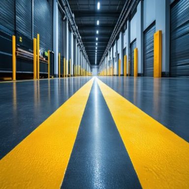 Industrial floor marking uses durable lines, shapes, and signs to enhance safety, organization, and efficiency in facilities like warehouses, factories, and commercial buildings. The markings direct traffic, identify hazards, and define spaces, often following color codes recommended by organizations like the Occupational Safety and Health Administration (OSHA).