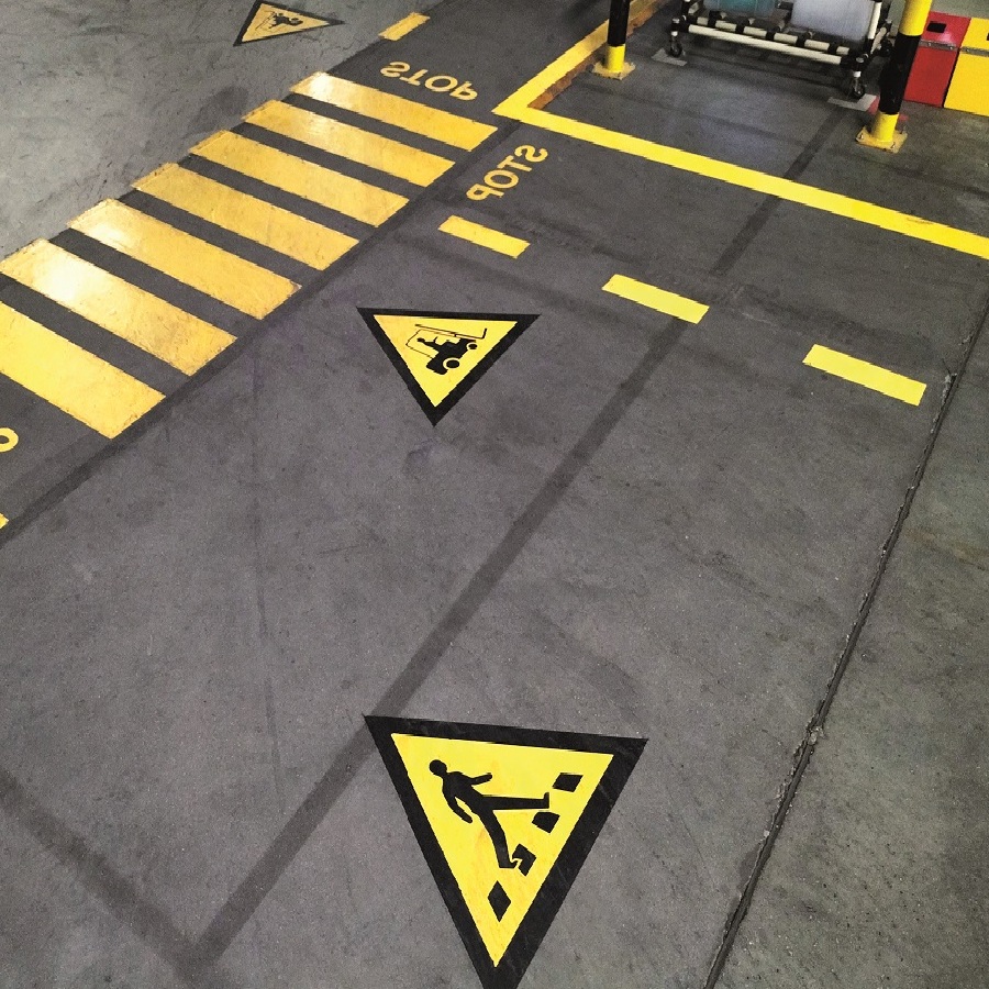 Line marking in factories also helps define the flow of traffic and the location of equipment, reducing the risk of accidents and improving safety.